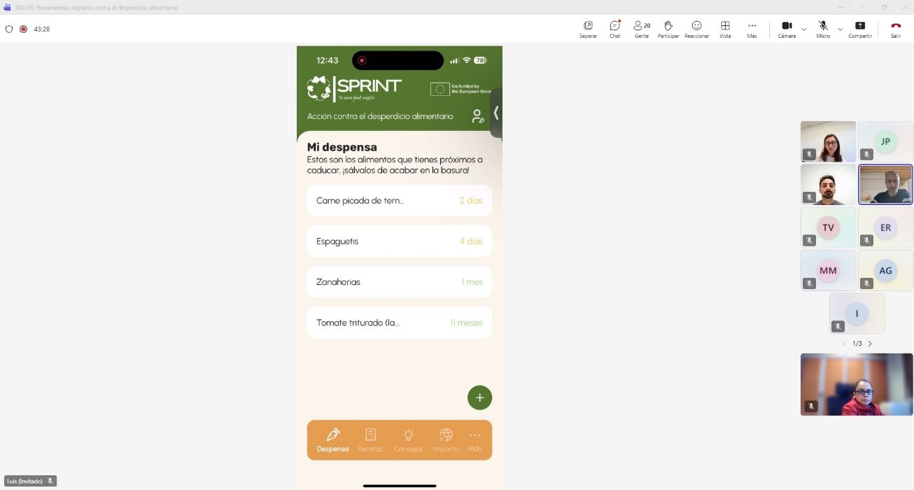 El taller contó también con la participación de Manuel Amador, investigador postdoctoral de la Universidad de Deusto, quien presentó una herramienta complementaria centrada en medir y analizar el desperdicio alimentario. Su aplicación, que puede usarse en hogares o en el sector HORECA, ayuda a los usuarios a cuantificar cuánto desperdician, entender por qué ocurre y recibir recomendaciones personalizadas para mejorar. Esta aplicación también la puedes probar accediendo a través del siguiente enlace: https://food-app.tools.precious-horizon.eu/login